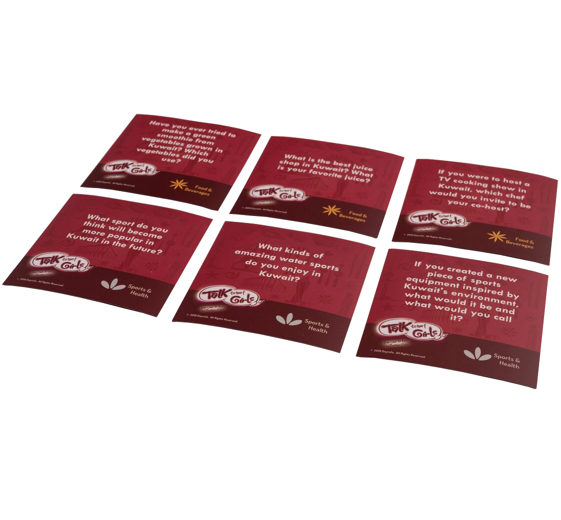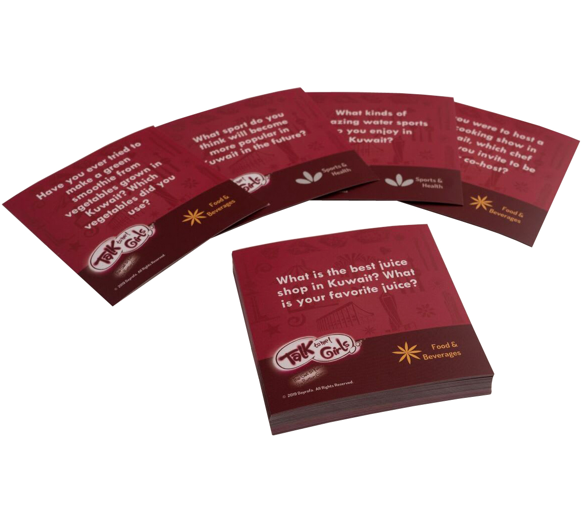 This card set, “Celebrating Kuwait” is an expansion for the “Talk to Me! Girls” game. This card set can also be used by itself as a great conversational game.